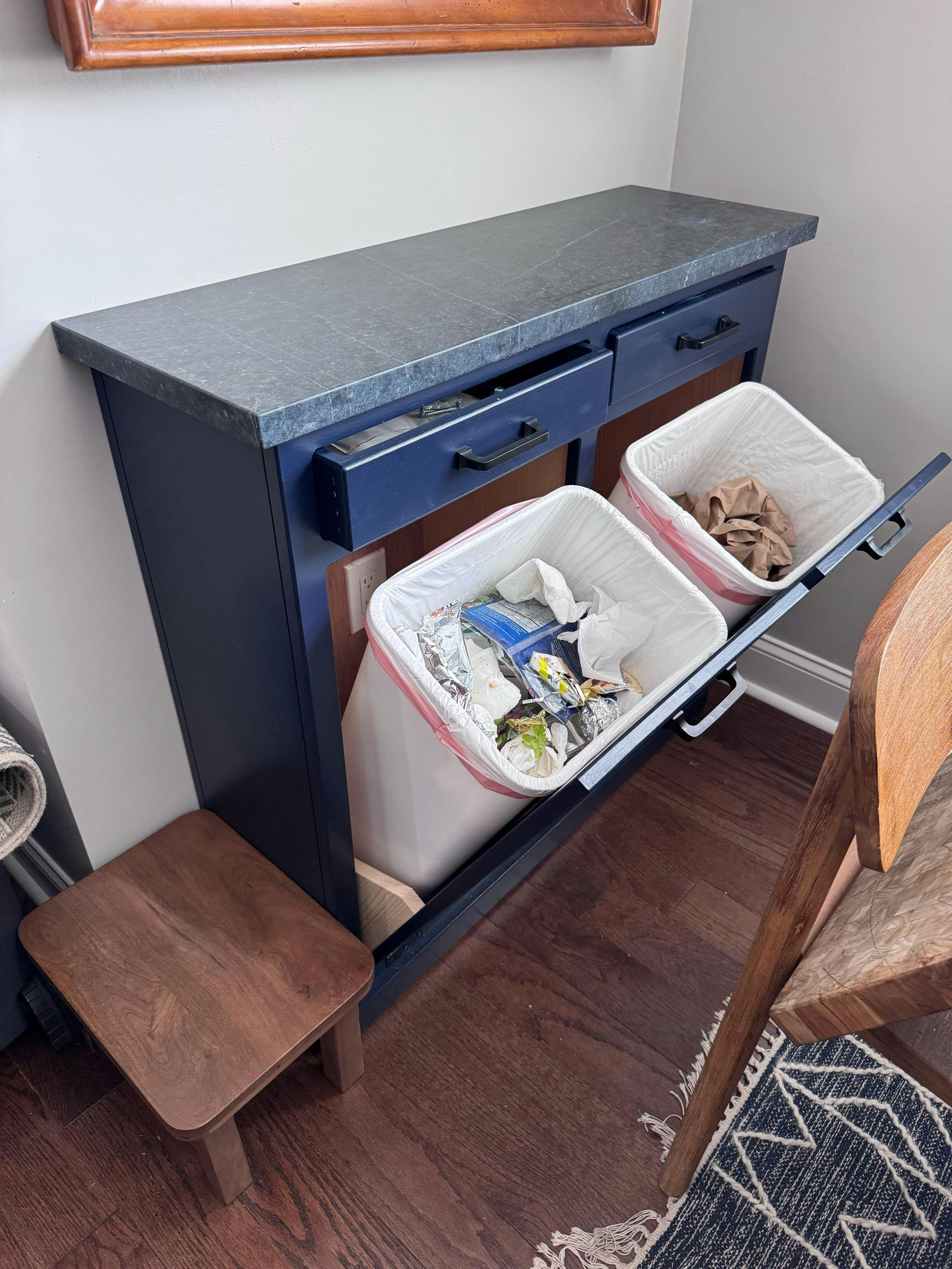 Store your trash and recycling in a beautiful, hand-crafted Amish double trash bin. This trash bin is purposefully left unfinished.