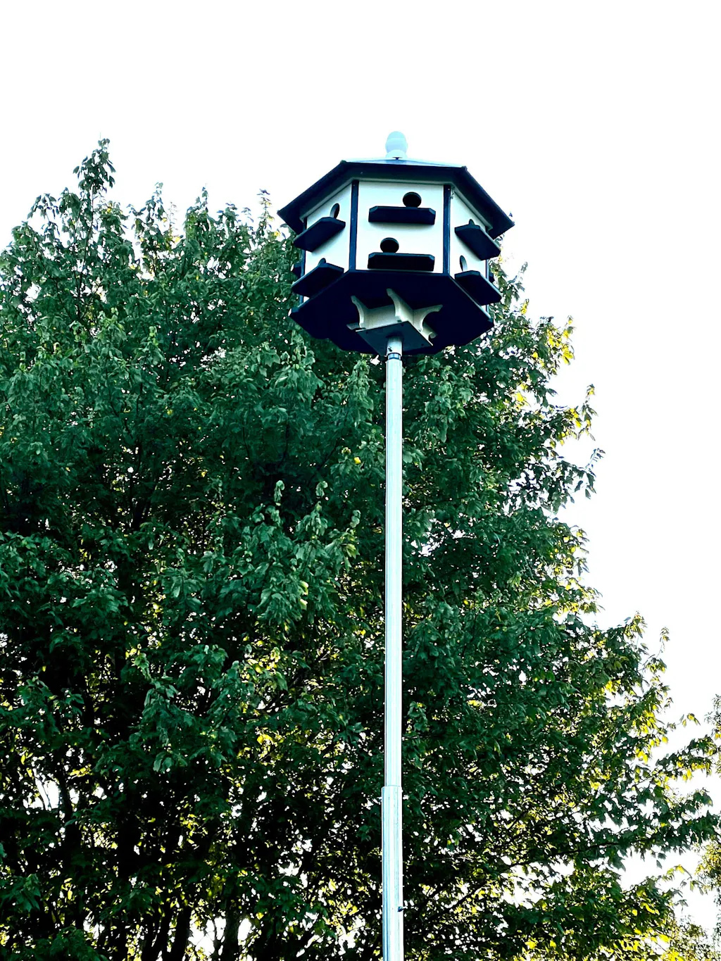 • IMPORTANT: Purple martin bird experts say that you will need at least 10' to 12' tall post above the ground in an open space.